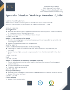 This Düsseldorf workshop represents an essential step forward in the pursuit of justice and accountability for the Yazidi genocide. By focusing on strategies for prosecuting the perpetrators and building international support for justice efforts, this workshop aims to lay a foundation for sustained action. Through collaborative dialogue and a shared commitment to human rights, we can help ensure that those responsible for these atrocities are held accountable and that the Yazidi community’s call for justice resonates on the global stage.